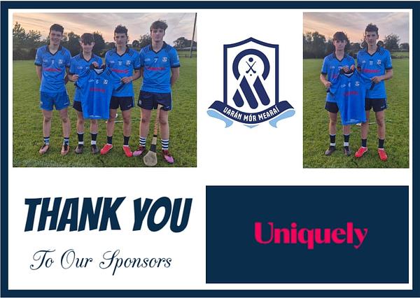 The team and management would like to take this opportunity to thank Tim O' Donoghue of Uniquely, for their continued support and jersey sponsorship.