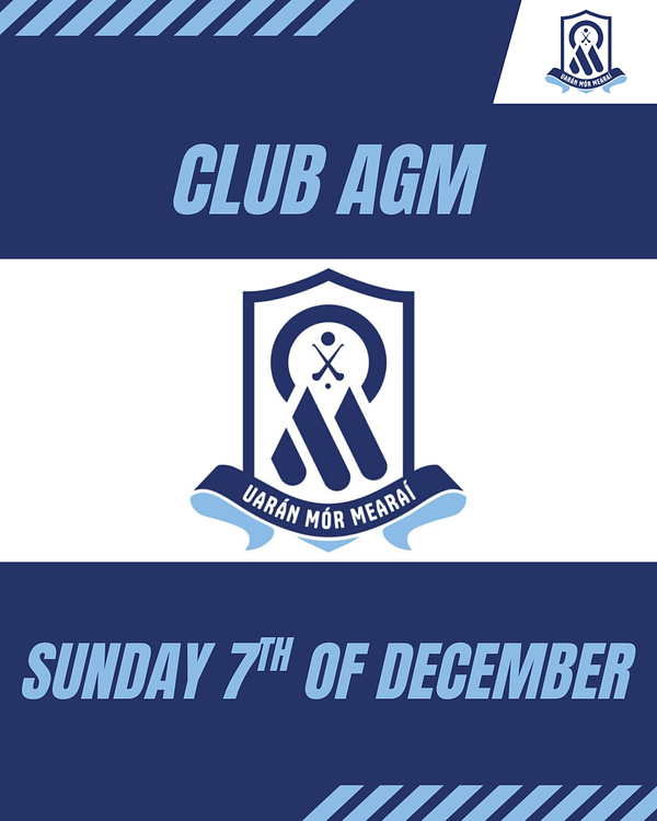 Please note that the Oranmore Maree GAA (One Club) Annual General Meeting (AGM) will take place on Sunday, 7th December 2025.