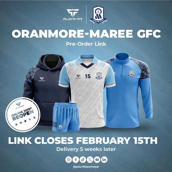 Don't forget that the Oranmore Maree GAA One Club shop, in association with PlayerFit, has reopened!