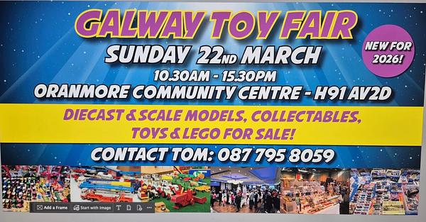 Tomorrow, Sunday 22nd of March, the Oranmore Community Centre will welcome the 'Galway Toy Fair' from 10:30am to 3:30pm.