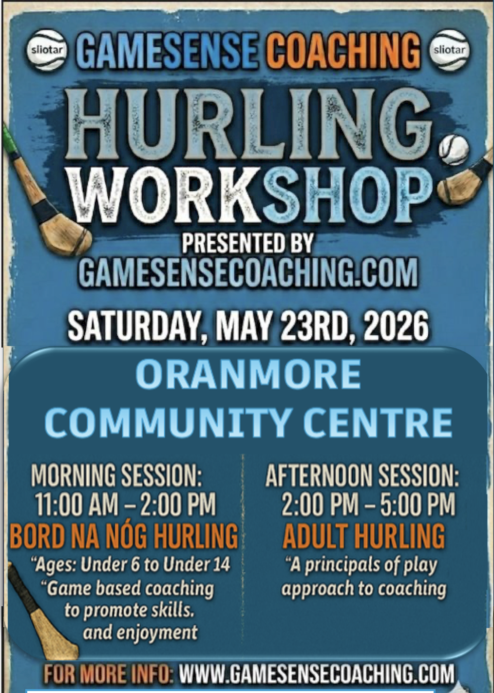 Lotto About Contact Honours Camps & Events Camogie Naomh Mhuire Renville Project Child Welfare Coaches Club Vetting Club Policy Document GAA For All Fundraising FeesPlease register to be part of this Hurling Coaching Workshop, Presented by Gamesensecoaching.com.