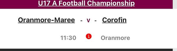 Best of luck to our U17 A footballers who face Corofin in the U17 A county football semi-final in Oranmore on Sunday at 12pm